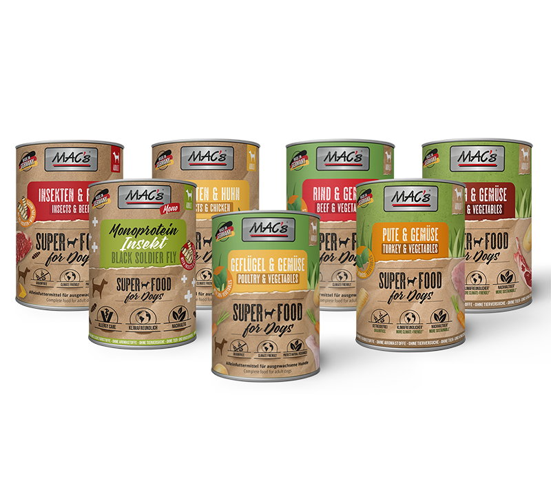 Die klimafreundlicheren Menüs der Marke MAC’s bringen nachhaltigeres Futter mit mehr Gemüse und Insekten in die Haushalte von Tierbesitzerinnen und -besitzern.